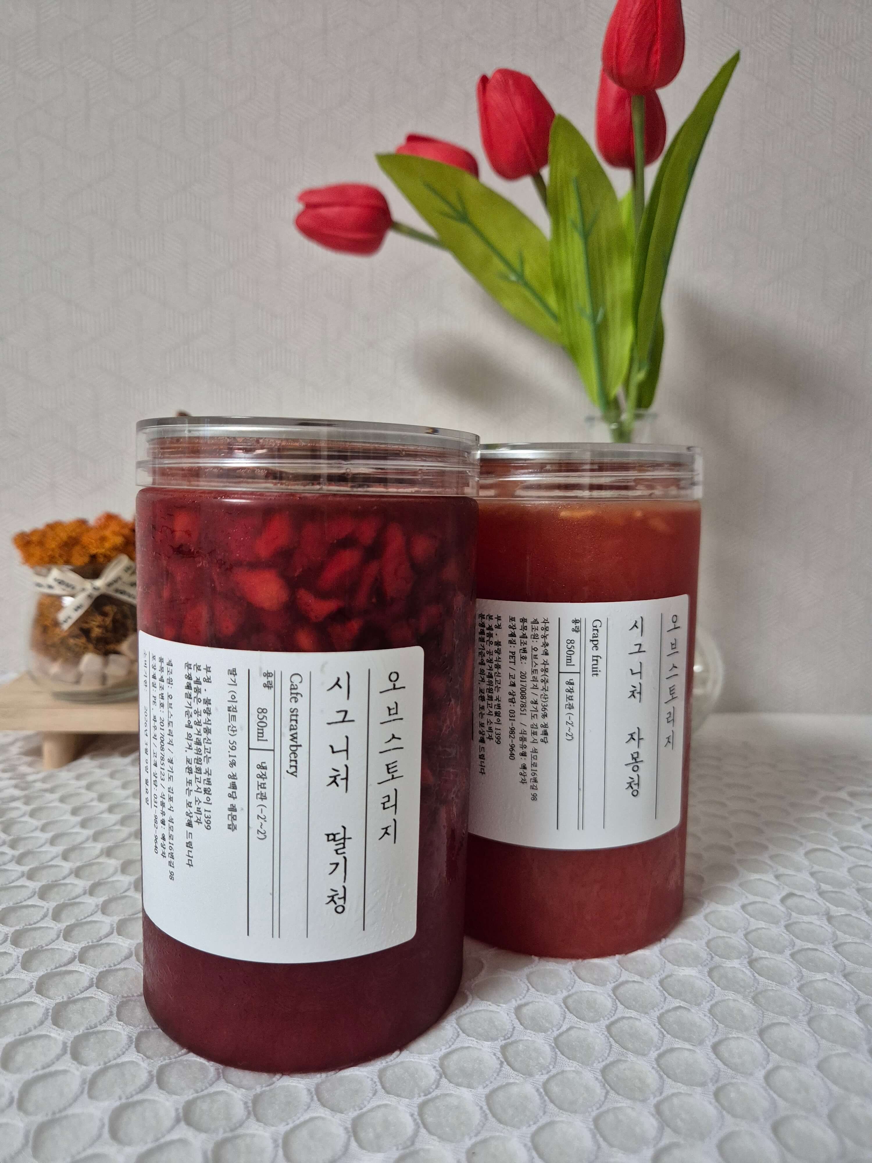 평소 딸기우유를 좋아해서 여름에 딸기나오면 바로바로 만들어줬는데 이제는 시그니처 딸기청이 있으니 편하게 먹을수 있어요~ 보통 딸기청은 너무 달달해서 아이가 싫어하는데 이 딸기청은 단맛이 적어서 좋고 라떼나 에이드를 만들어마셔도 깔끔하면서 적당히 단맛이 나서 좋더라구요^^ 양도 많고 맛있어서 재주문해야겠어요^^