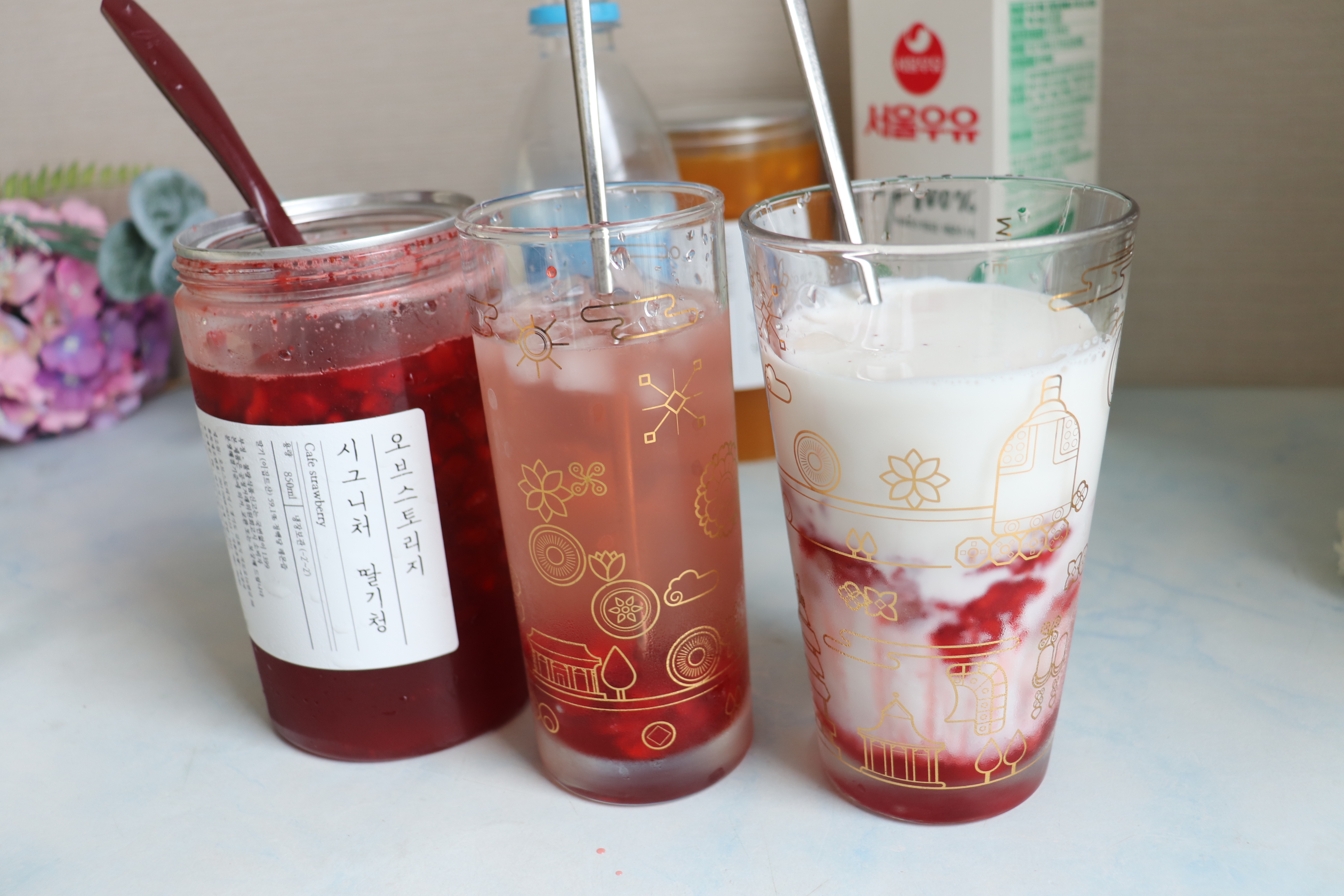 집에서 간편하게 딸기에이드와 딸기라떼 만들어 마시니 좋더라구요