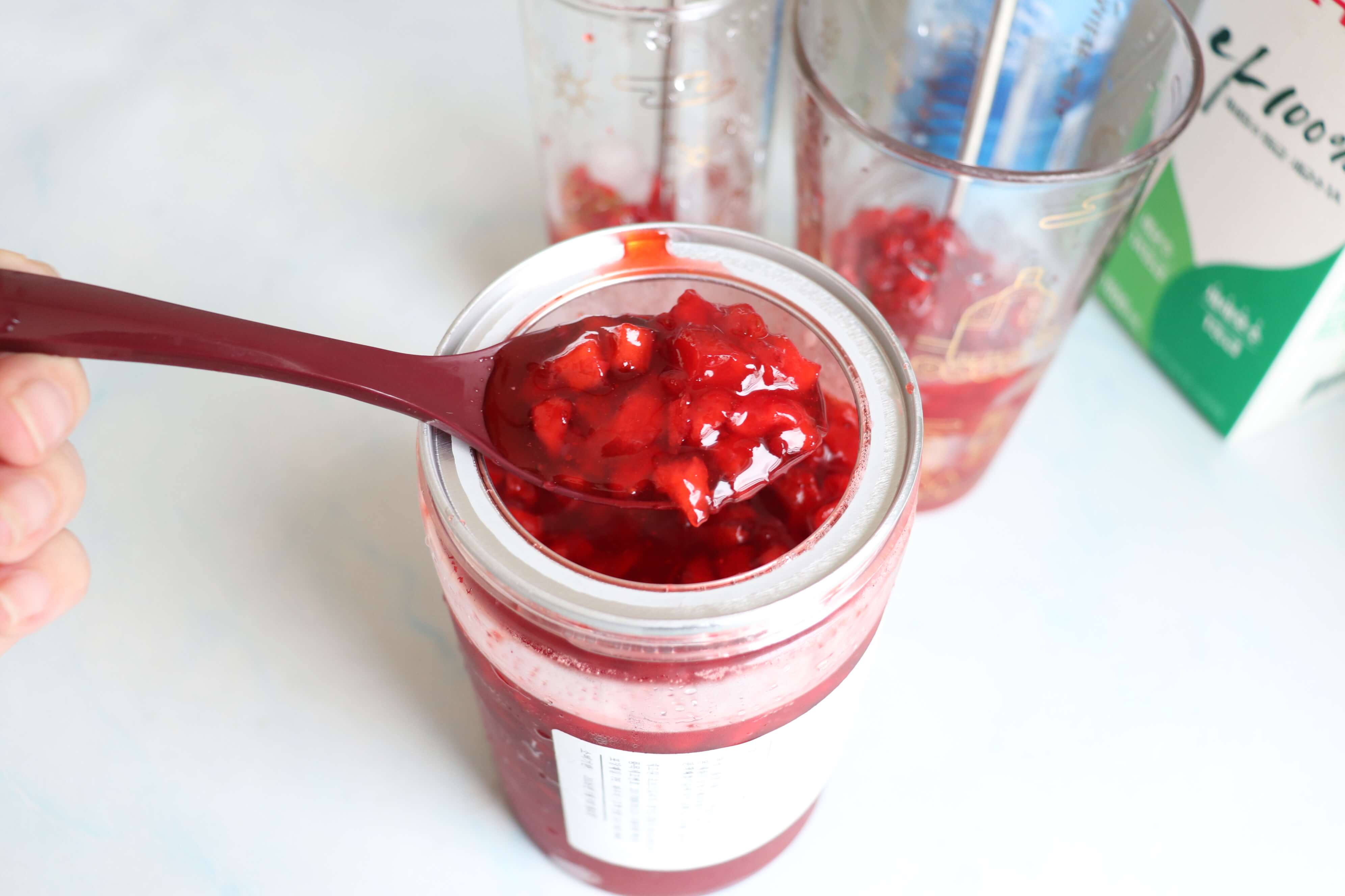 딸기 씹히는 느낌이 좋아 알갱이가 너무 좋다고 엄마 모르게 그냥 떠 먹기도 한답니다.