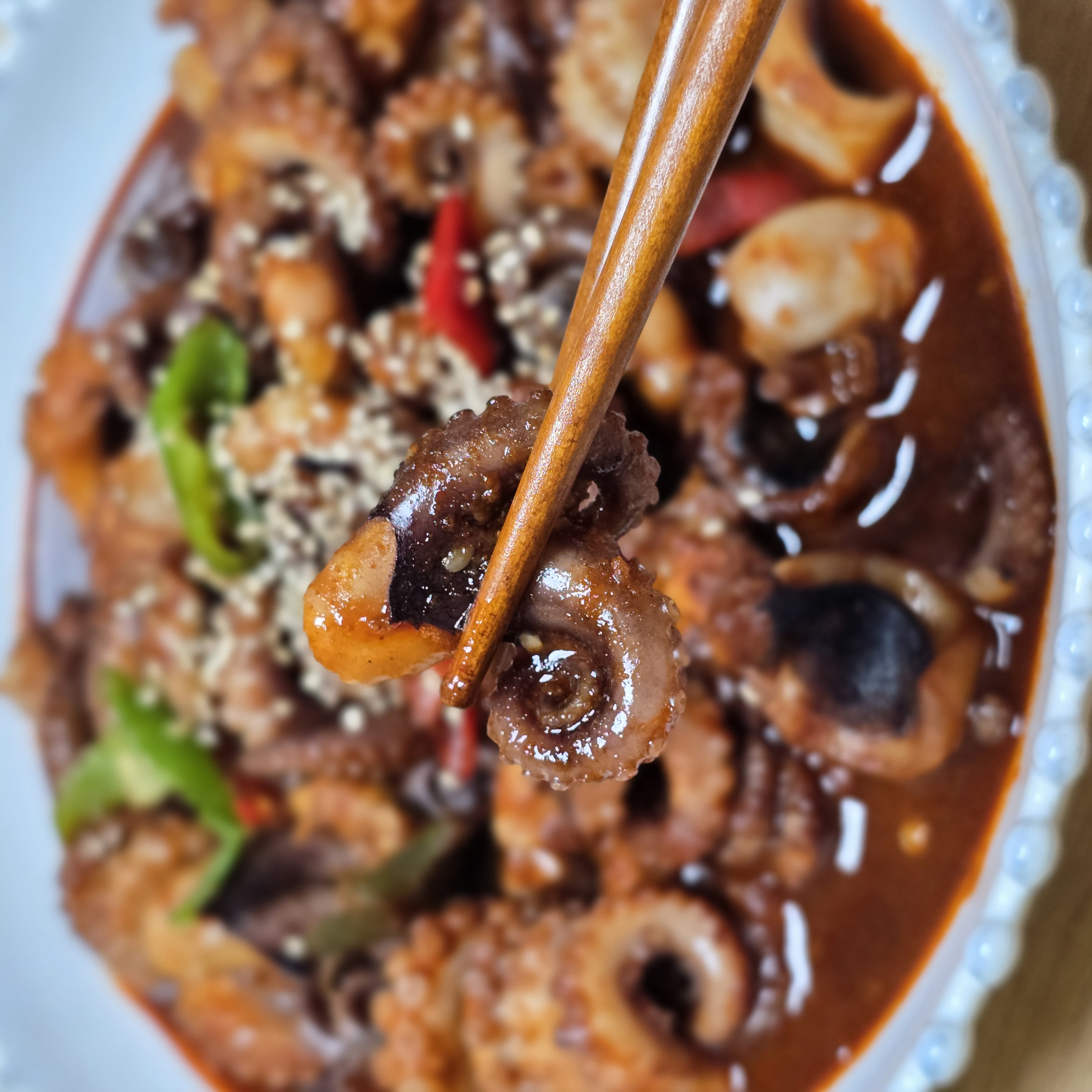 부드럽고 탱글~~ 무엇보다 양념이 맛있어서 입에 착착 감기네요